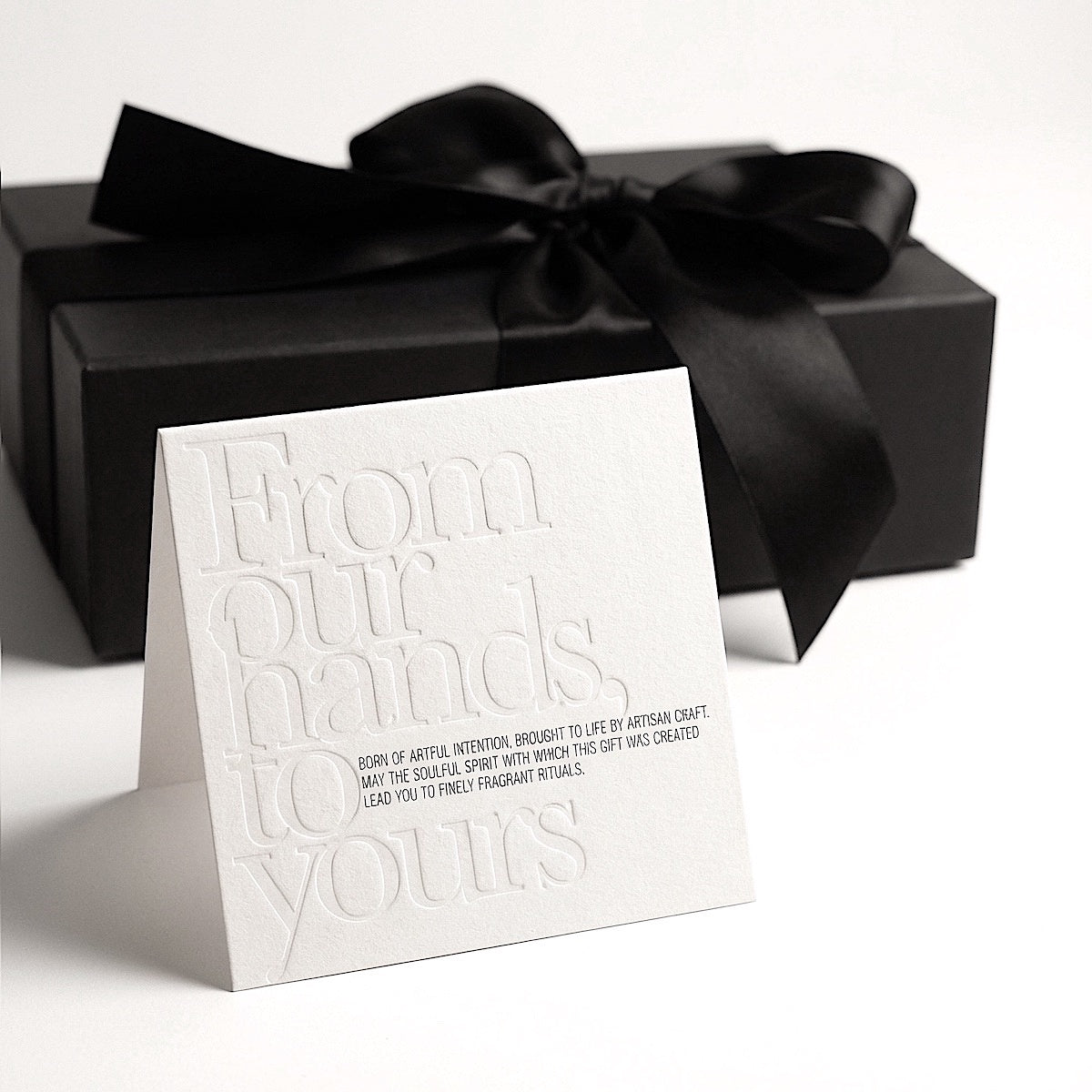 A new luxury design to elevate our gifting in 2026. The gift card is included when ordering any gift set, or when adding Gift Wrap to your order at checkout.